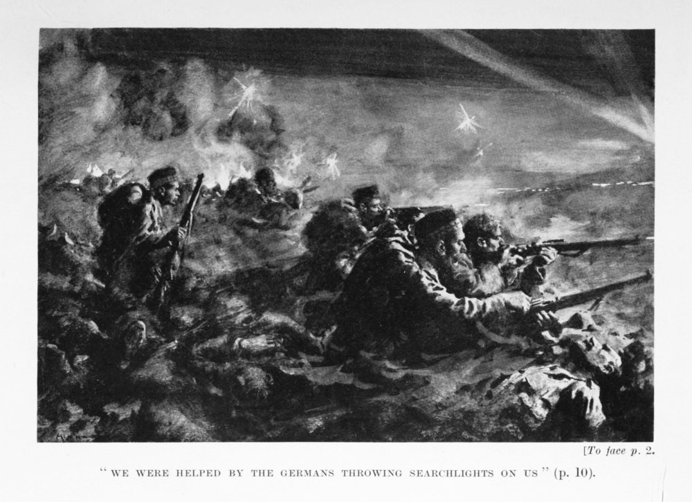 The long and thrilling day was ending, darkness was falling, and we pulled ourselves together and prepared for a lively night. We fully expected a counter attack, but no—it seemed to be the other way about, for on our left we had our famous Gurkhas and Sikhs, and they were getting ready for work.